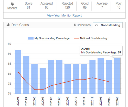 We are exceptionally proud to be achieving a 90-95% tenants paid in full and on time record with the Tenant Profiling Network system, which far exceeds the national average.