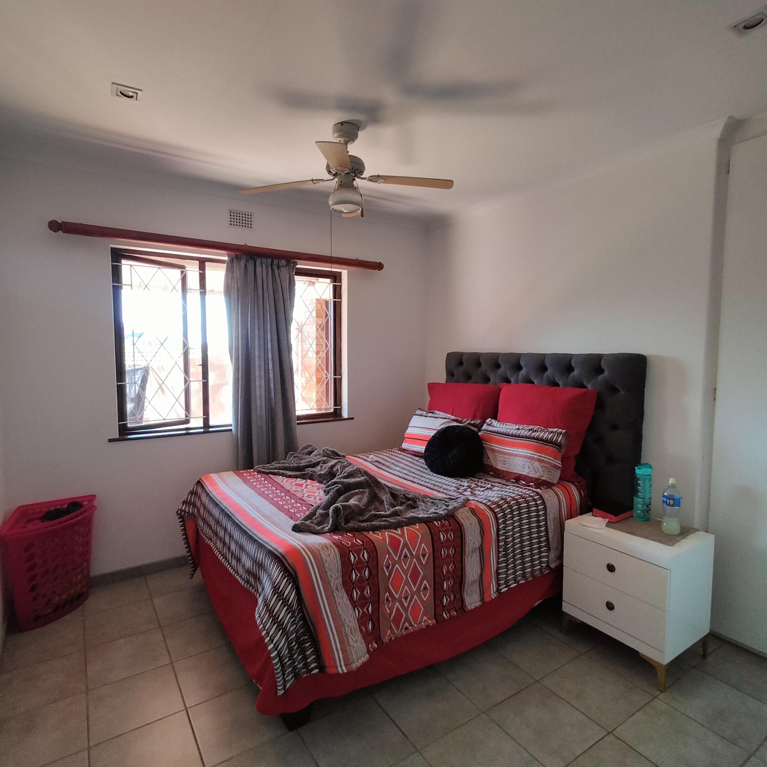 - Second bedroom with ceiling fan.