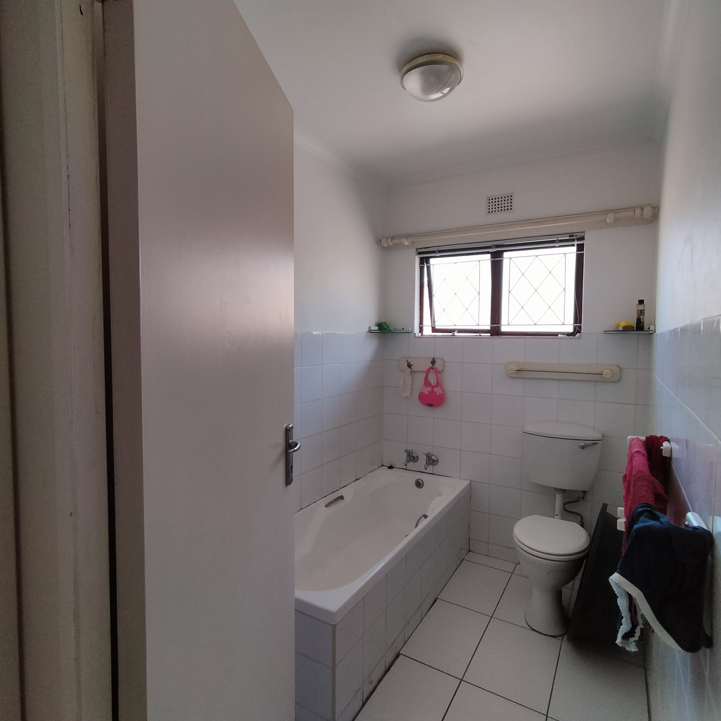 - Family bathroom with full bath tub, basin and toilet.