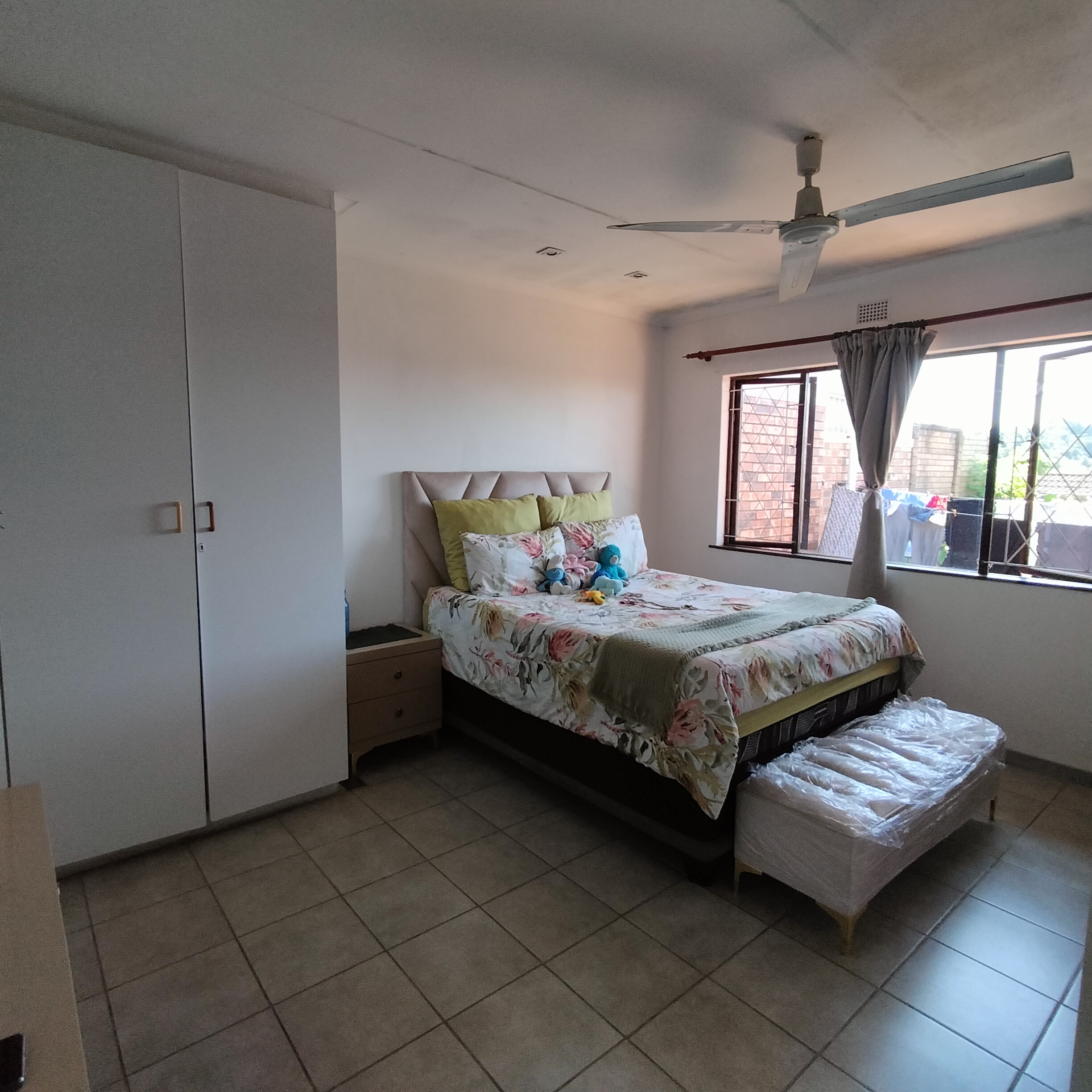- Second bedroom with ceiling fan.